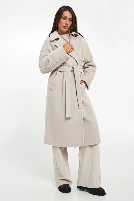Płaszcz damski z wełny dziewiczej English MARELLA Ecru Regular