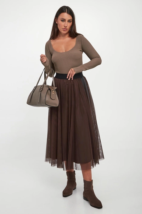 Komplet damski dziergany top + spódnica TWINSET Beżowy Slim