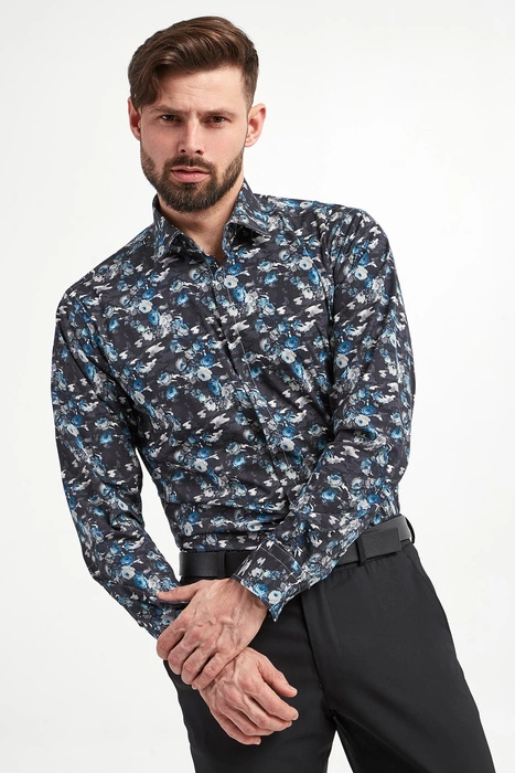 Koszula męska popelinowa KARL LAGERFELD Grafitowy Slim