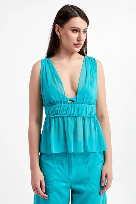 Top damski szyfonowy PATRIZIA PEPE Turkusowy Regular