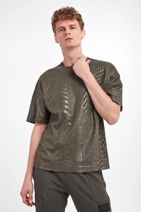 T-shirt logowany EA7 EMPORIO ARMANI Khaki Relaxed