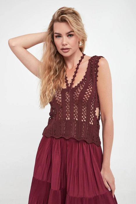 Top damski dziergany PATRIZIA PEPE Bordowy Regular
