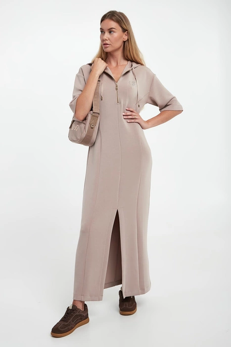 Sukienka maxi z kapturem LIU JO Beżowy Regular