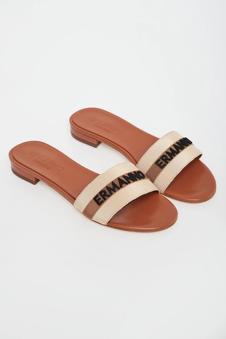 Klapki damskie skórzane ERMANNO FIRENZE Beżowy