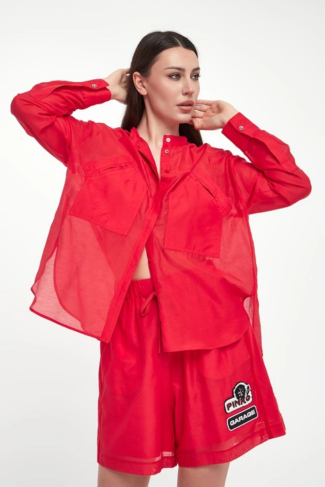 Koszula damska z jedwabiem Andy PINKO Czerwony Regular