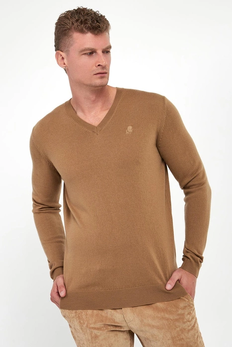 Sweter męski KARL LAGERFELD Kamelowy Regular