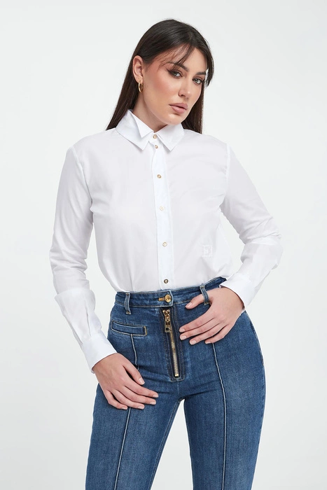 T-shirt damski z logo ELISABETTA FRANCHI Biały Regular