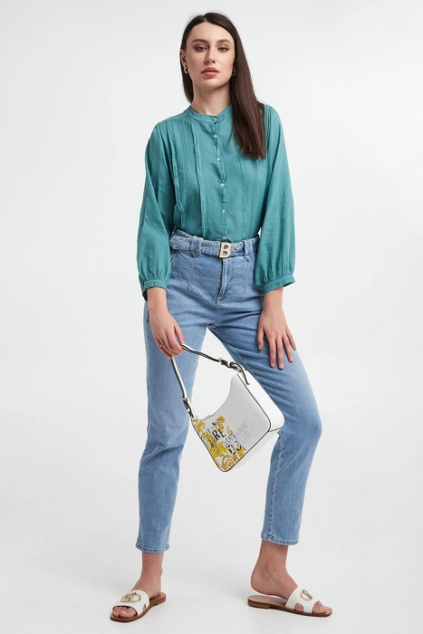 Top damski szyfonowy PATRIZIA PEPE Turkusowy Regular