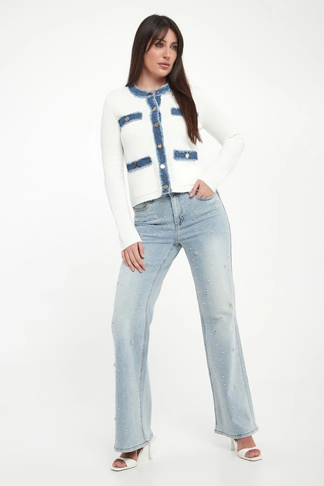 Jeansy damskie z kryształkami LIU JO Błękitny Straight