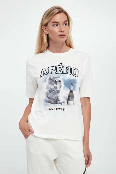 T-shirt damski z nadrukiem SPORTALM Ecru Regular