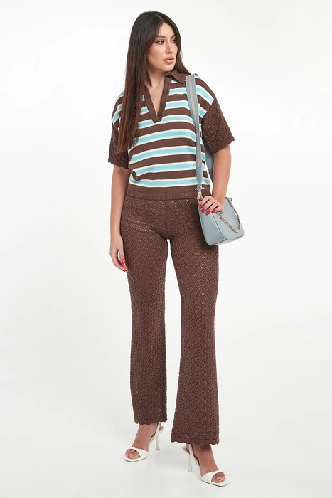 Spodnie damskie ażurowe ERMANNO FIRENZE Czekoladowy Straight