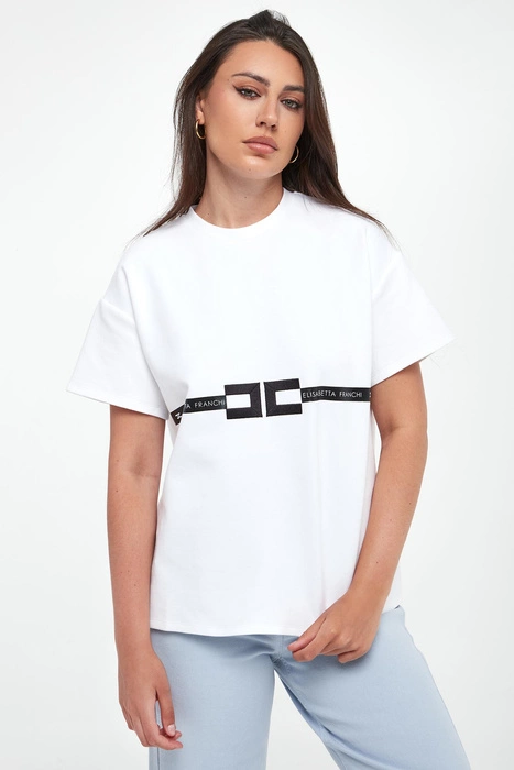 T-shirt damski z logo ELISABETTA FRANCHI Biały Regular