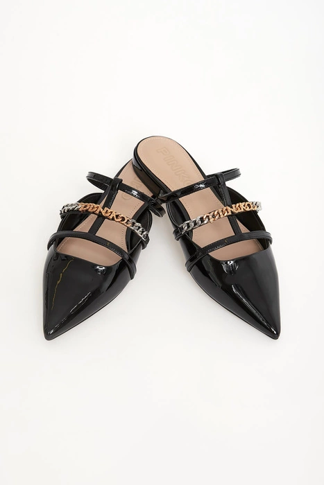 Klapki damskie z lakierowanej skóry PINKO Czarny