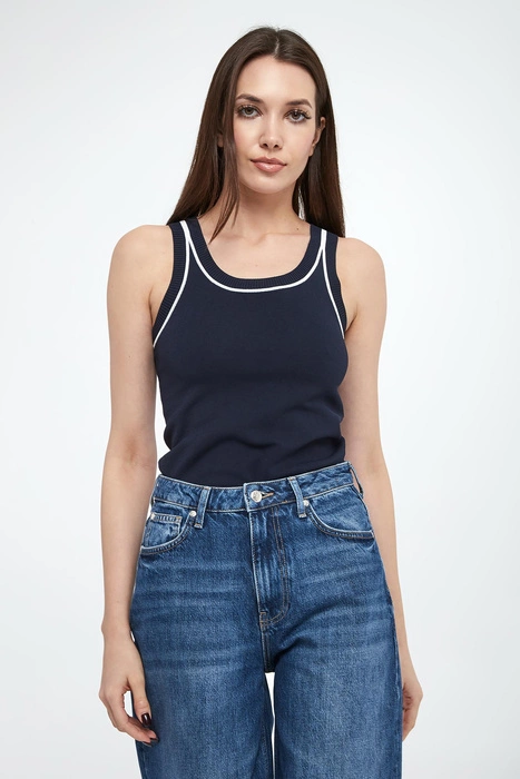 Top damski błyszczący ELISABETTA FRANCHI Granatowy Regular