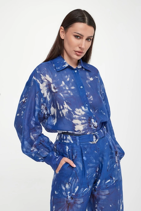 Koszula damska z ramii ERMANNO FIRENZE Kobaltowy Regular