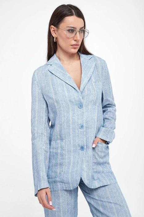 Marynarka damska lniana ERMANNO FIRENZE Błękitny Regular