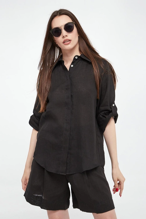 Koszula damska lniana Racla MARELLA SPORT Czarny Regular