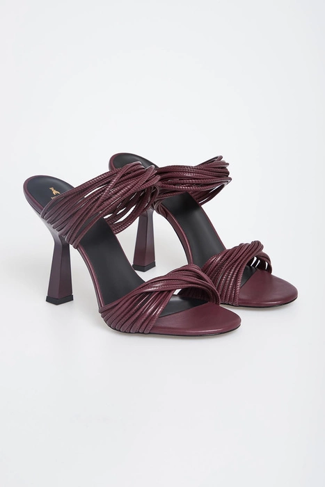 Sandały damskie na obcasie skórzane PATRIZIA PEPE Bordowy