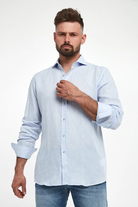 Koszula męska lniana KARL LAGERFELD Niebieski Regular