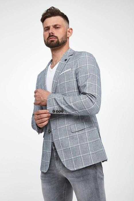 Marynarka męska w kratkę z lnem Hogiz JOOP! JEANS Niebieski Regular