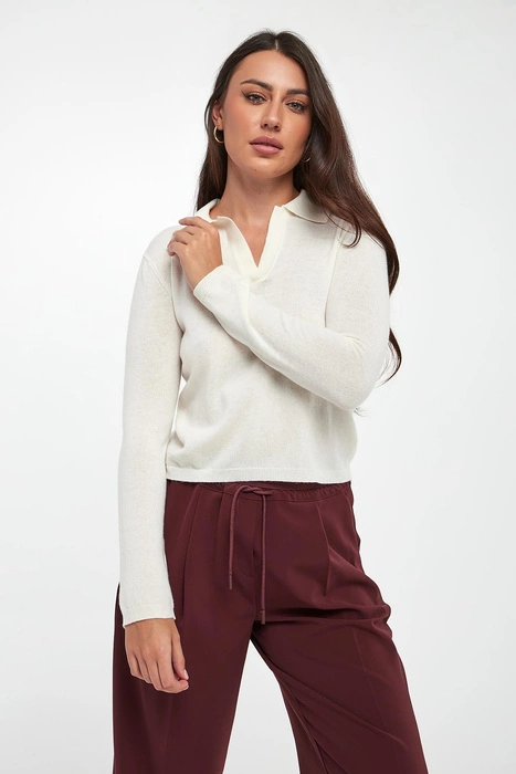 Sweter damski dziewicza wełna z kaszmirem Moxa Ecru Regular