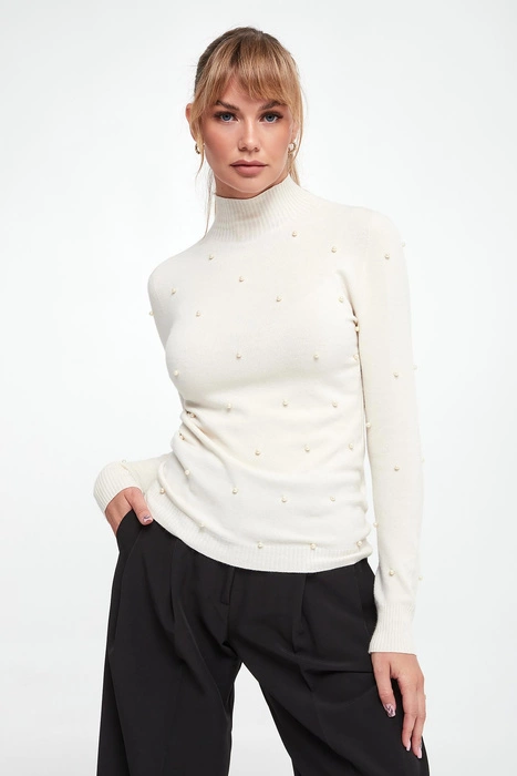 Golf damski ERMANNO FIRENZE Ecru Slim