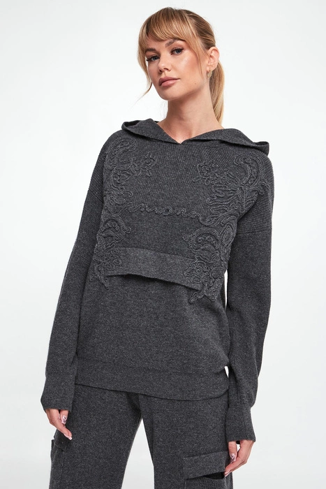 Sweter damski wełniany z kapturem ERMANNO FIRENZE Szary Relaxed