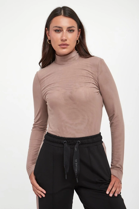 Bluzka damska z golfem SPORTALM Beżowy Slim