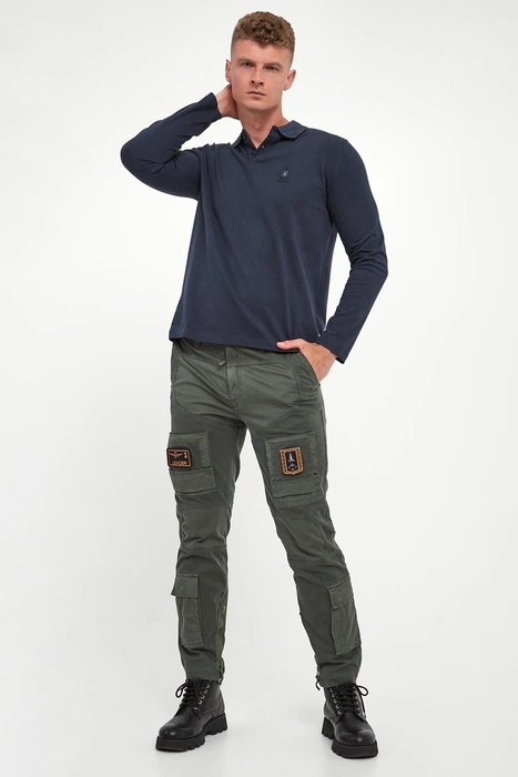 Polo męskie z długim rękawem AERONAUTICA MILITARE Granatowy Regular