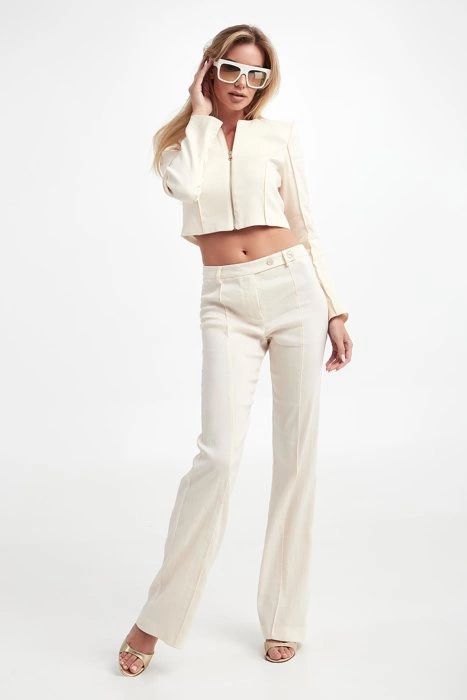 Spodnie damskie lniane PATRIZIA PEPE Ecru Flared