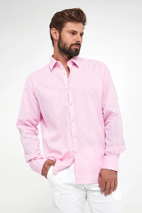Koszula męska lniana KARL LAGERFELD Różowy Regular