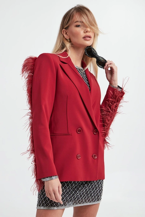 Marynarka damska z piórami PATRIZIA PEPE Czerwony Regular