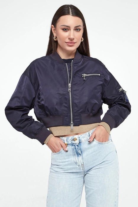 Kurtka damska bomberka ERMANNO FIRENZE Granatowy Cropped