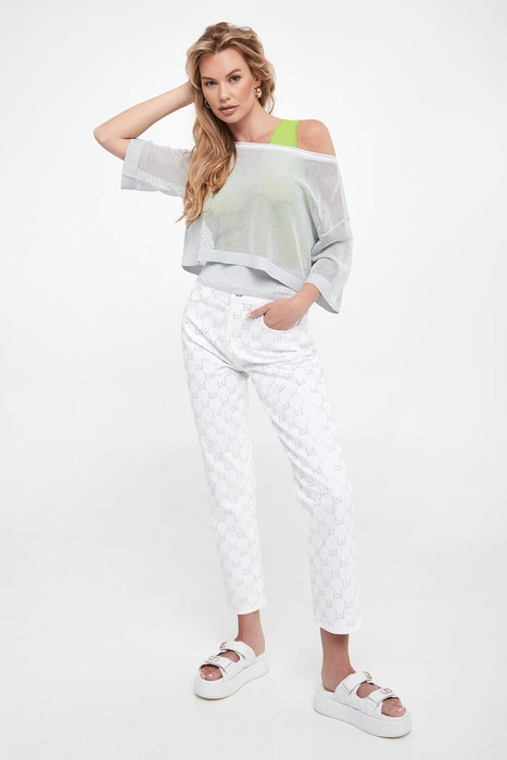 Jeansy damskie logowane LIU JO Biały Mom
