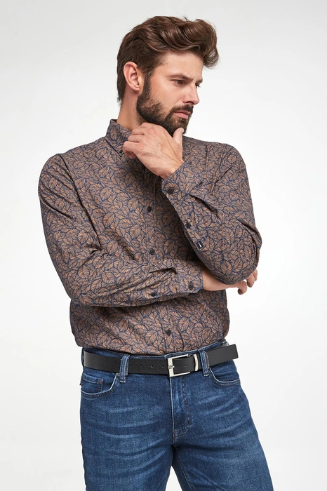 Koszula męska ze wzorem Hanson2-W JOOP! JEANS Brązowy Regular